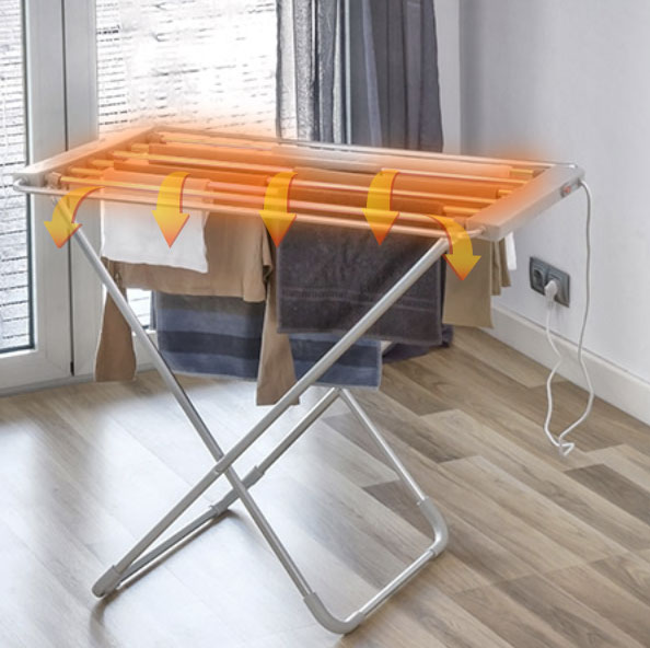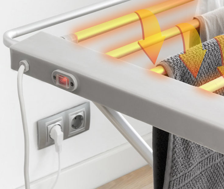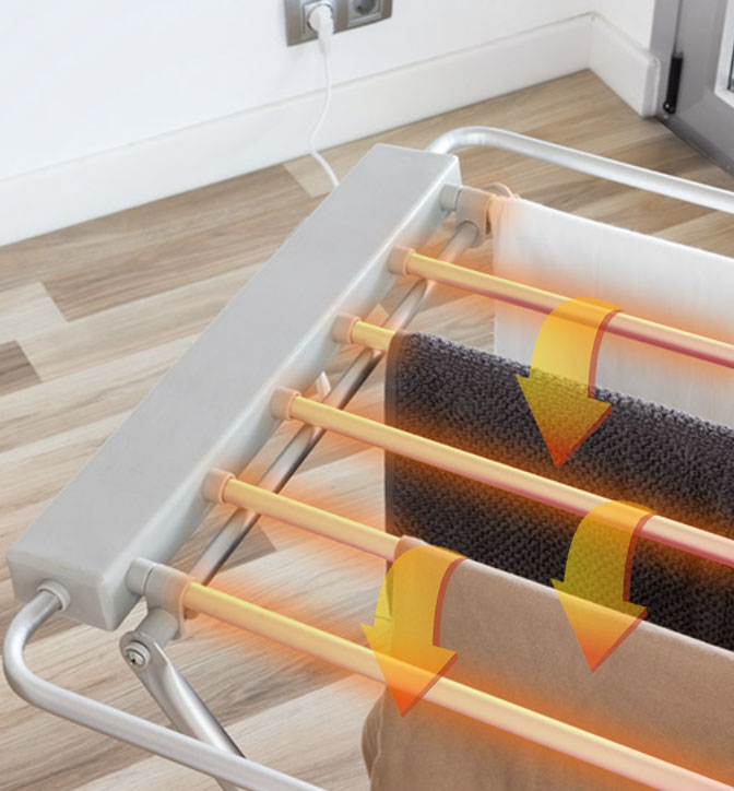 Le intelligenti sbarre riscaldanti asciugano rapidamente ed efficacemente il bucato. I vestiti vengono asciugati e riscaldati in poche ore, pronti per essere subito indossati o rimessi nell'armadio!